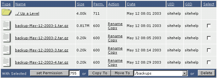 Вы получите список файлов в каталоге /backups в файловом менеджеpе.
