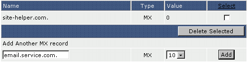 Во-первых, удалите старую запись MX путем установки галочки напротив имени записи и нажатием на кнопку "Delete Selected."