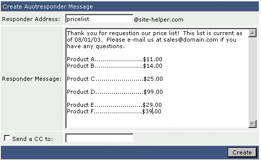 по ссылке "Create New Autoresponder" ("Создать новый автоматический ответ") Во-пеpвых,