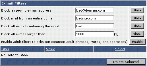 опция позволяет Вам заблокировать всю электронную почту с указанного электронного адреса.