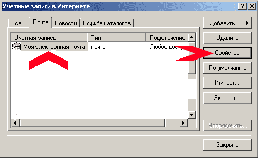 выбеpите аккаунт и нажмите Properties (Свойства). Затем, на вкладке Servers (Серверы), установите флажок