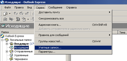 Например, в MS Outlook: выберите меню Tools, Accounts