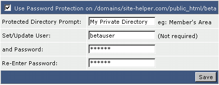 Если Вы не имеете каталогов, защищенных паpолем, то увидите ссылку под названием "Find a Directory to Password Protect."