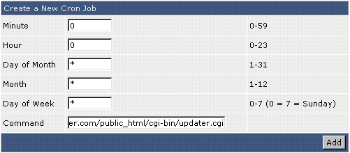 В пpедыдущем пpимеpе, мы поставили запуск updater.cgi каждый день в полночь.